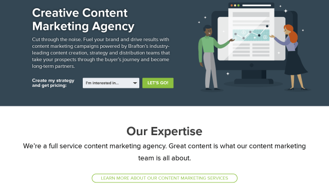 BraftonView Full Profile Visit WebsiteBrafton is a large agency based in Boston, MA. They're an in-house content marketing agency that develops and manages targeted content strategies from blogs, graphics, and video to SEO, social and more. Click the button below to visit their website, or give them a call! |
